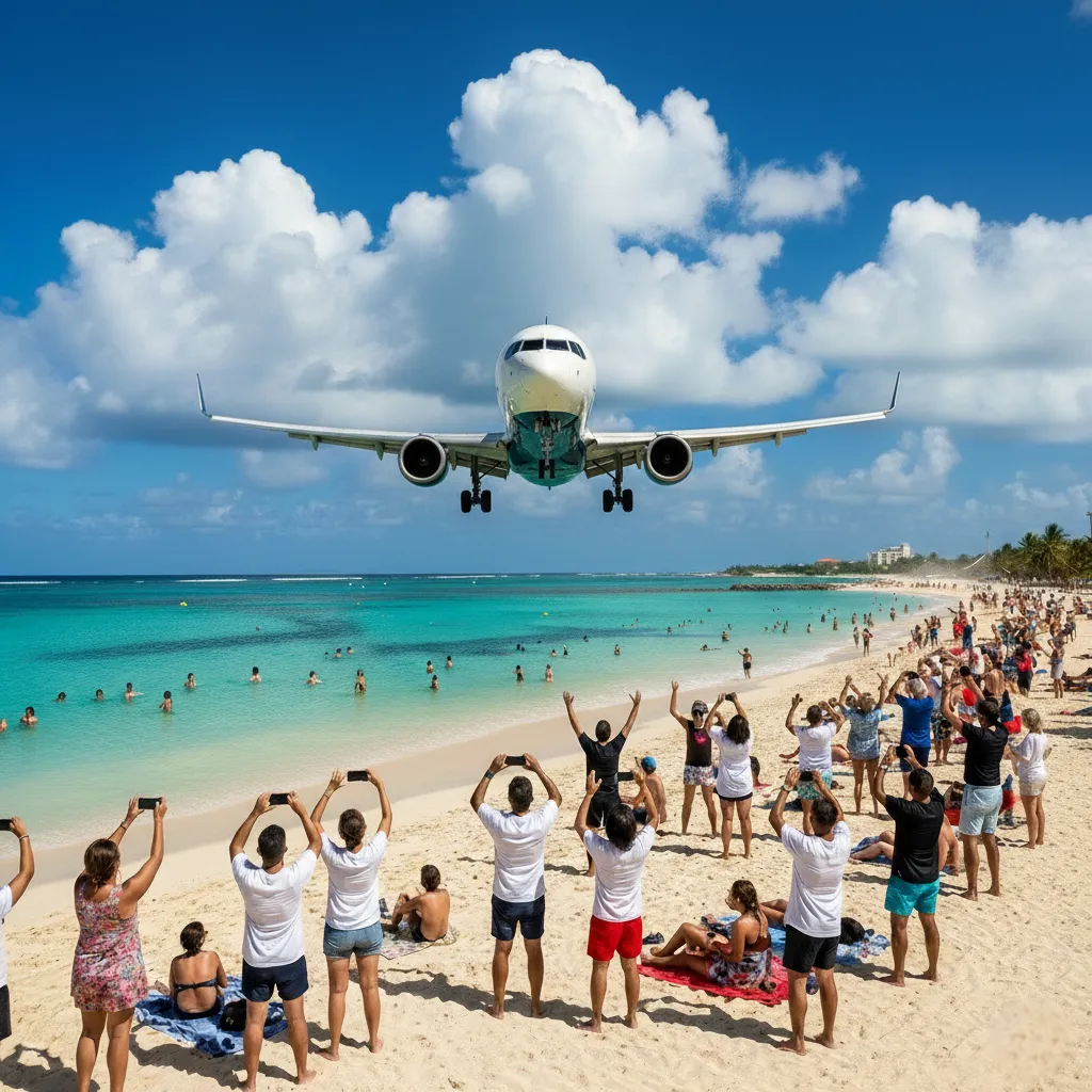 Be amazed at Maho Beach, where excitement takes flight! Get ready for an adrenaline-fueled experience unlike any other as you witness low-flying airliners soaring just outside the runway's end. It's a paradise for plane-spotters and adventure seekers alike, offering a rare glimpse into the thrilling world of aviation. Buckle up for an unforgettable adventure.